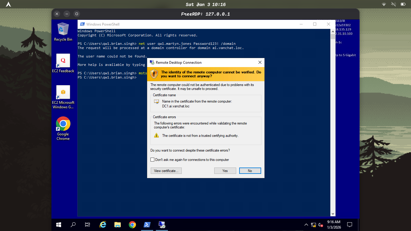 So we got the credentials for brian which are... Username: qw1.brian.singh Password: _4v41yVd$!DW