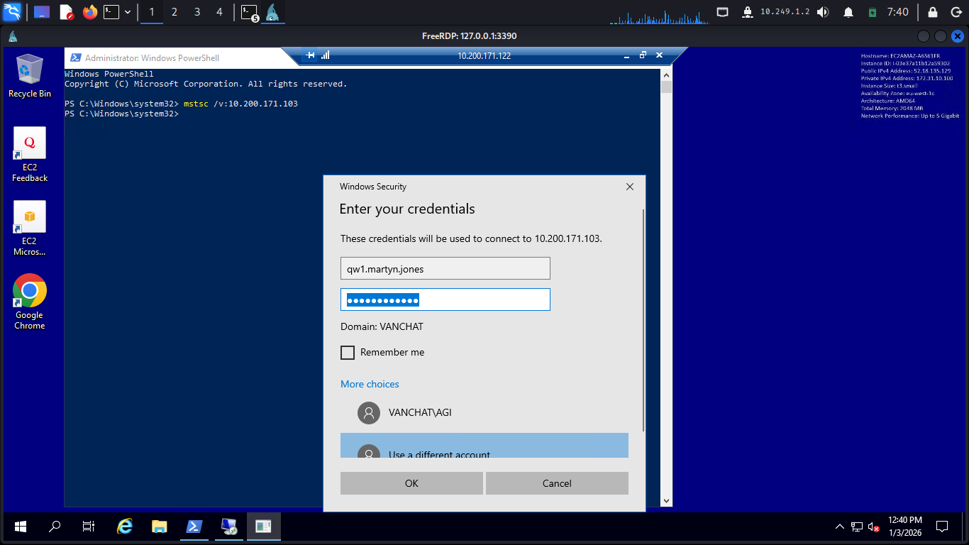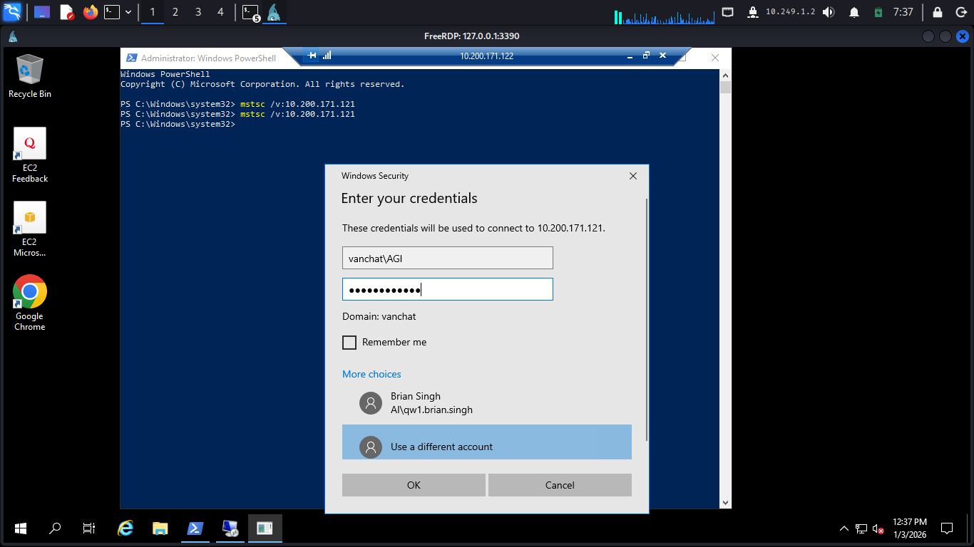 PS C:\Windows\system32> mstsc /v:10.200.171.141